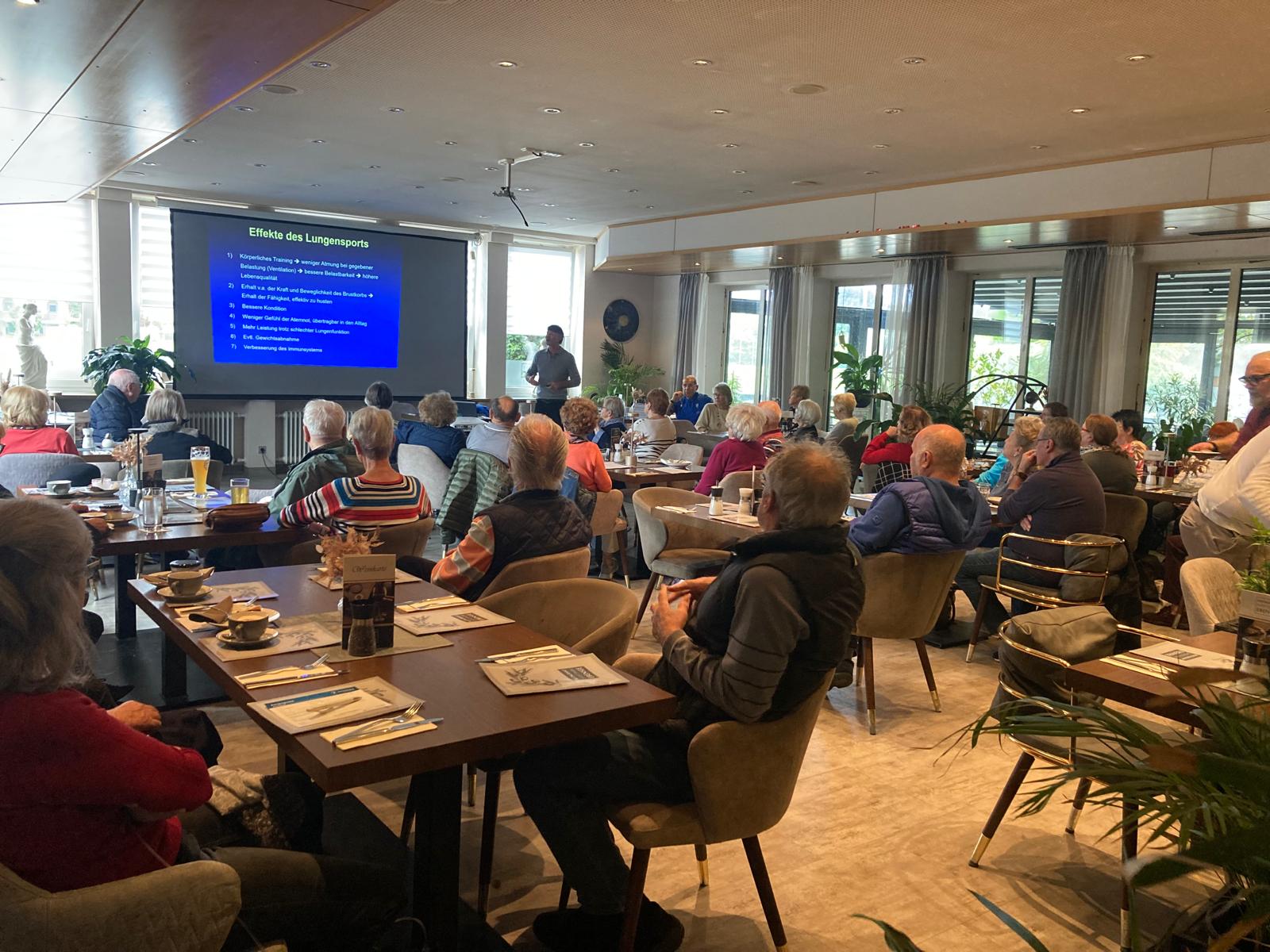 Ein wunderbarer, fachlich interessanter und sehr informativer Vortrag von Dr. med. Christian Schacher (Facharzt für Innere Medizin / Notarzt). Mehr als 50 Teilnehmende folgten gespannt seinen Tipps & Ausführungen. Siggi Kaiser präsentierte dazu spannende Übungen aus seinem Lungensport-Angebot in der Fitlounge.