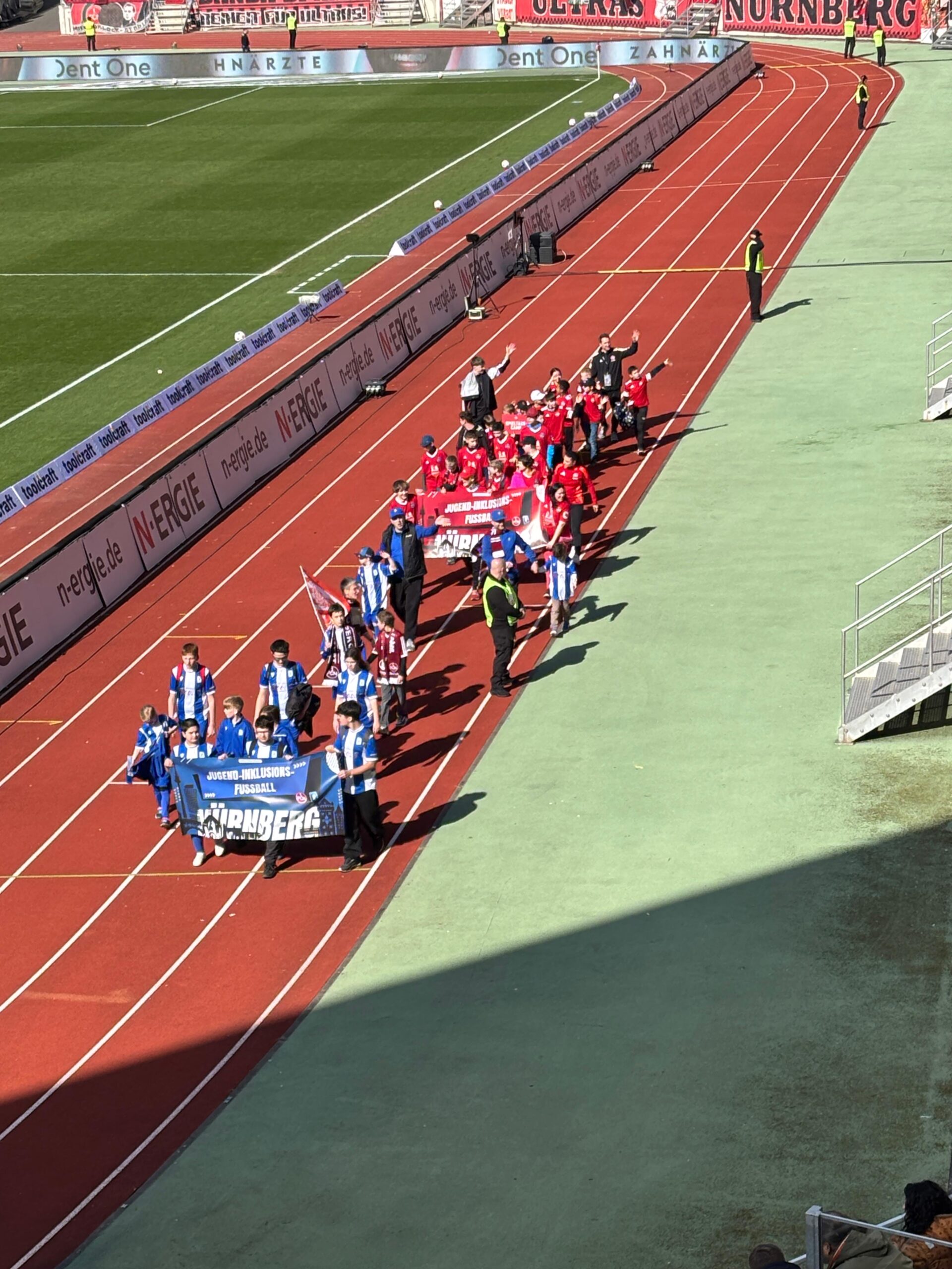 Ein weiterer Höhepunkt wartete anschließend im Max-Morlock-Stadion selbst. Die Inkluseekicker hatten die Möglichkeit, eine besondere Stadionrunde vor dem Spiel zu machen.