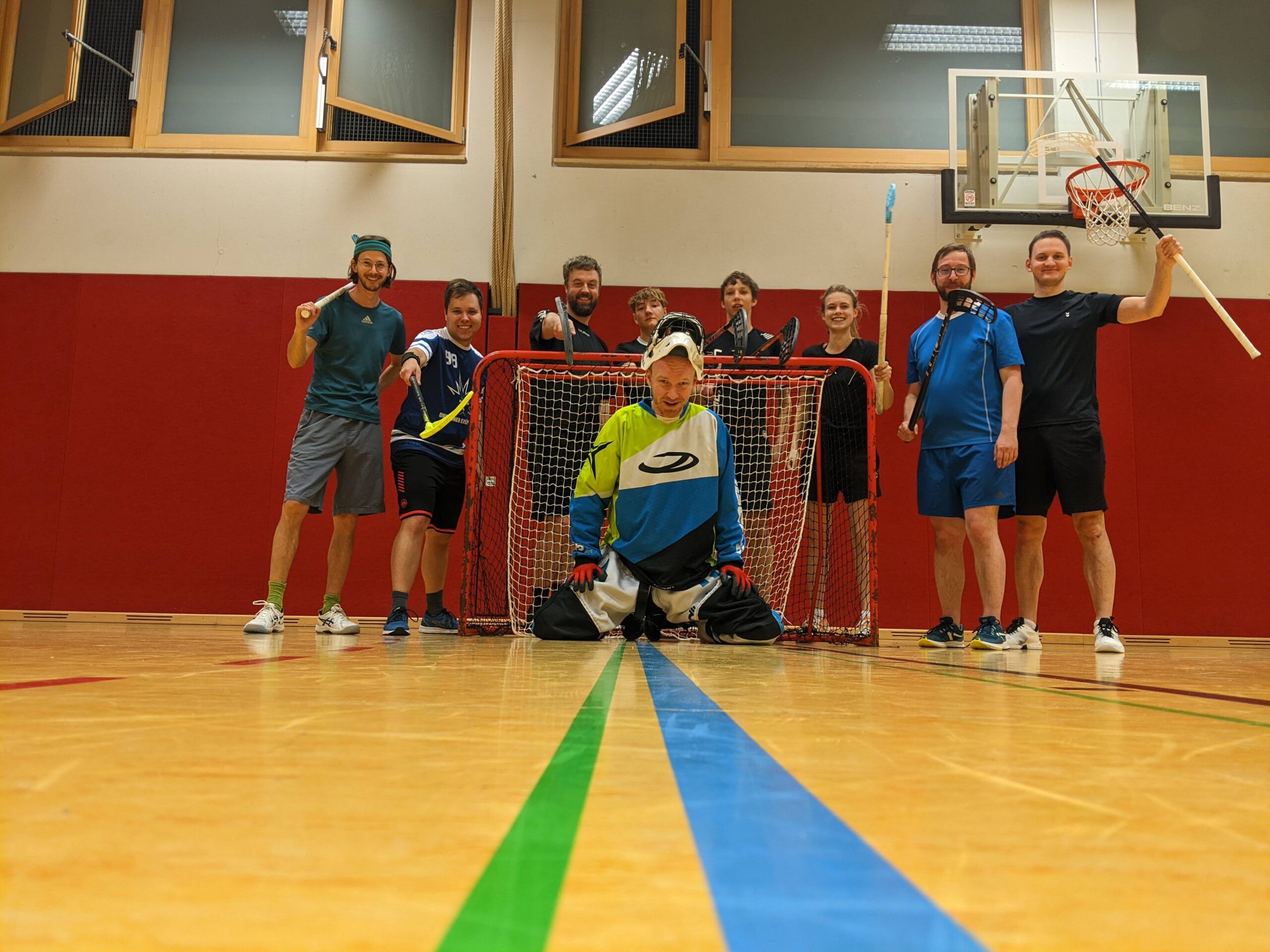 Floorball ist eine schnelle Hallensportart, bei der zwei Mannschaften versuchen, mit einem Kunststoffball und einem leichten Schläger Tore zu erzielen. Das Spiel wird auf einem rechteckigen Spielfeld gespielt mit Toren an beiden Enden, wobei auch hinter dem Tor weitergespielt werden kann. Floorball ist bekannt für geringe Verletzungsgefahr, schnelle Spielzüge und leicht verständliche Regeln, die es auch Anfängern und Quereinsteigern relativ leicht machen, mitzuspielen. Für ein erstes Ausprobieren verleihen wir gerne Schläger; abgesehen von Hallenschuhen wird sonst keine Ausrüstung benötigt.